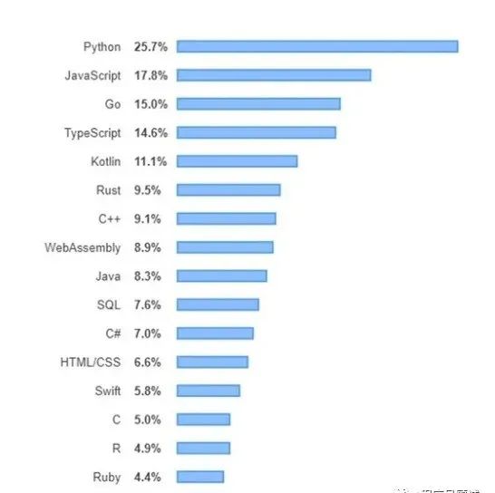 Python语言广泛应用于:Web应用开发、图形界面开发、系统网络运维、网络编程、人工智能等,涉及领域非常多,可谓是无处不在。Python可从事范围多,自然工作机会和岗位都有很多的发挥空间,而且Python也是继Java和C++之后的第三主流编程语言,现在也已经远远的超过了它们,人才就业率非常高,由下图可知: