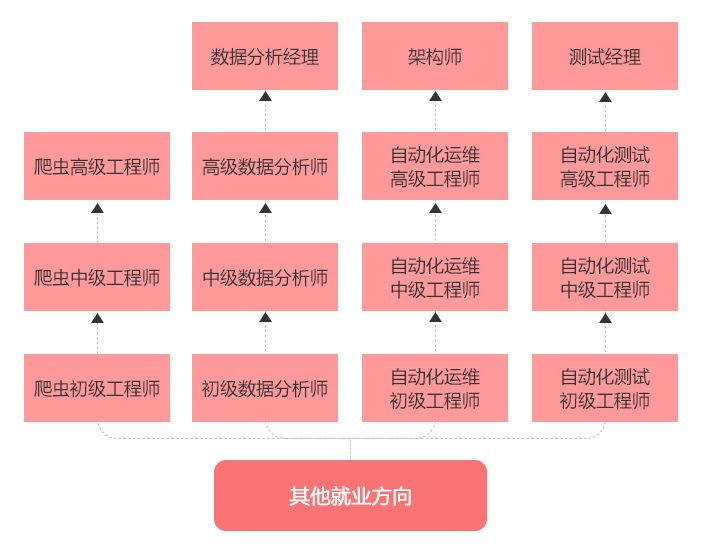 Python的应用岗位选择也很多,因为Python语言本身所具有的优势,决定了从事Python学习的开发工程师相较于其他编程语言,拥有更多岗位发展选择。