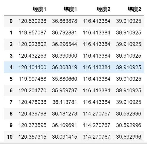 data = pd.read_excel('C:/Users/yyz/Desktop/python办公技巧/data/经纬度计算距离.xlsx')