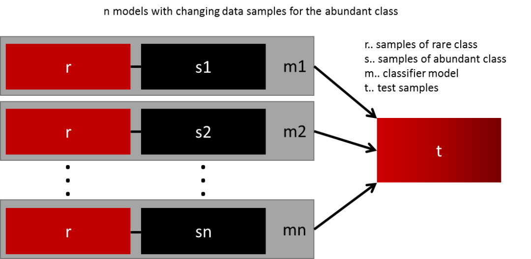 集成多个不同模型:通过创建更多数据来实现模型的通用性在实践中是不可取的。举个例子,假设你有两个类别:一个有 1000 个数据样本的罕见类别以及一个有 10000 个数据样本的常见类别。我们可以不必努力为罕见类别寻找 9000 个数据样本来进行模型训练,而是可以采用一种 10 个模型的训练方案。其中每个模型都使用 1000 个罕见数据样本和 1000 个常见数据样本进行训练。然后使用集成技术得到最佳结果。