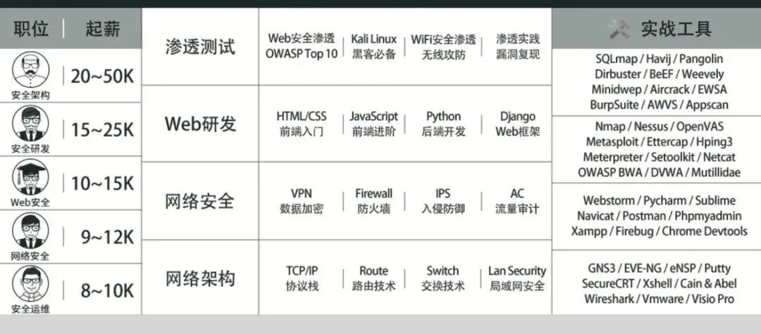 对于从来没有接触过网络安全的同学,我们帮你准备了详细的学习成长路线图。可以说是最科学最系统的学习路线,大家跟着这个大的方向学习准没问题。