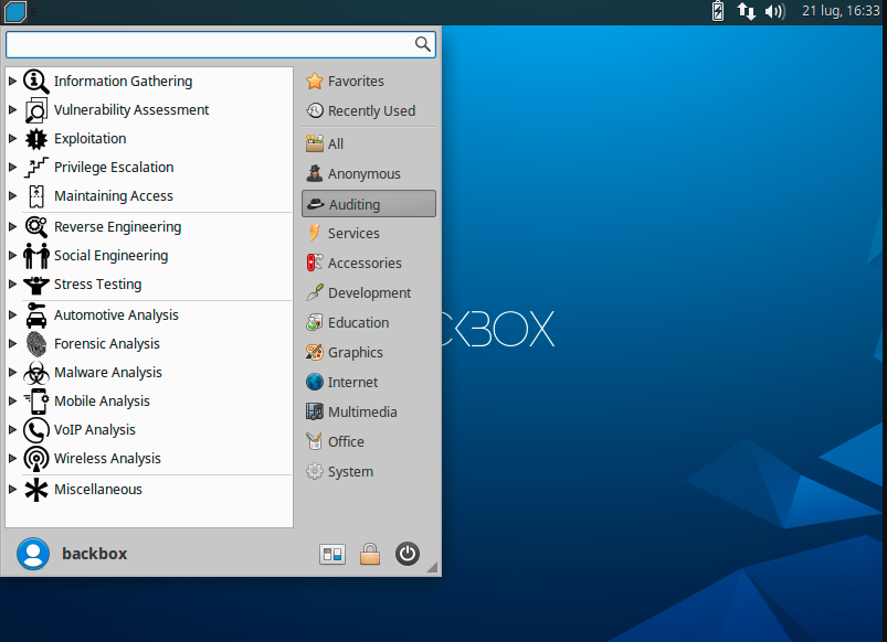 BackBox Linux是一个基于Ubuntu的渗透测试和安全评估操作系统,安装部署了最常见/最常用的安全和分析工具,从 web 应用分析到网络分析、压力测试、抓包嗅探、漏洞评估、计算机取证、汽车漏洞利用等,并且具有友好的用户界面。