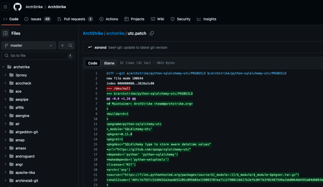 https://github.com/ArchStrike/ArchStrike/blob/master/archstrike/utc.patch