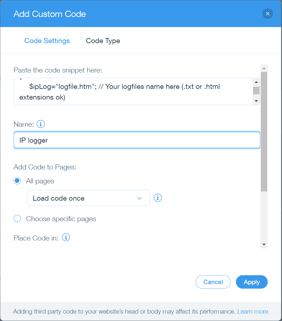 复制并粘贴你的自定义代码,然后配置你希望如何加载代码以及在哪些页面上加载代码。