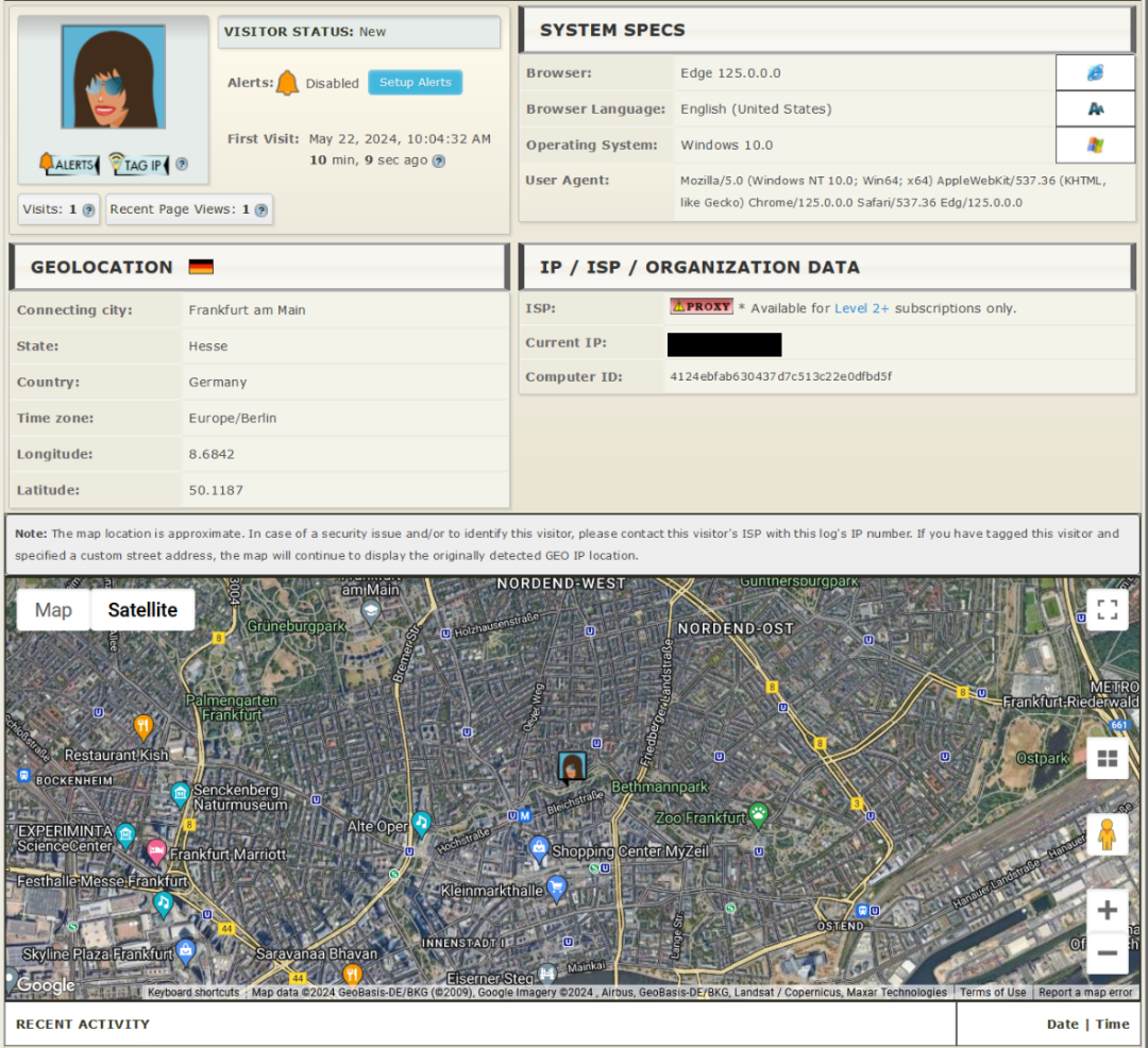 最后,访问你的 Wix 网站,测试你的代码。然后回到 TraceMyIP、我的项目,选择页面加载。应该会看到网站访问的综合列表。点击跟踪。页面将打开,方便地显示网站访问者的大量有趣信息。TraceMyIP 的功能非常丰富,因此请花时间探索其众多选项。