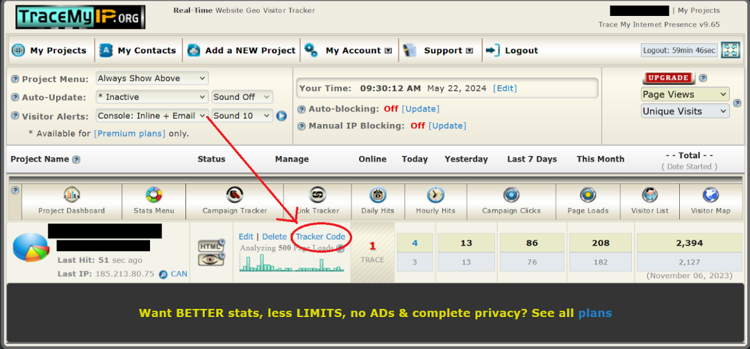 其次,在 TraceMyIP 创建一个账户。它是免费的,并可以让用户用很传统的方式使用IP记录器,此外,它还能提供更深入的网站访客统计数据。