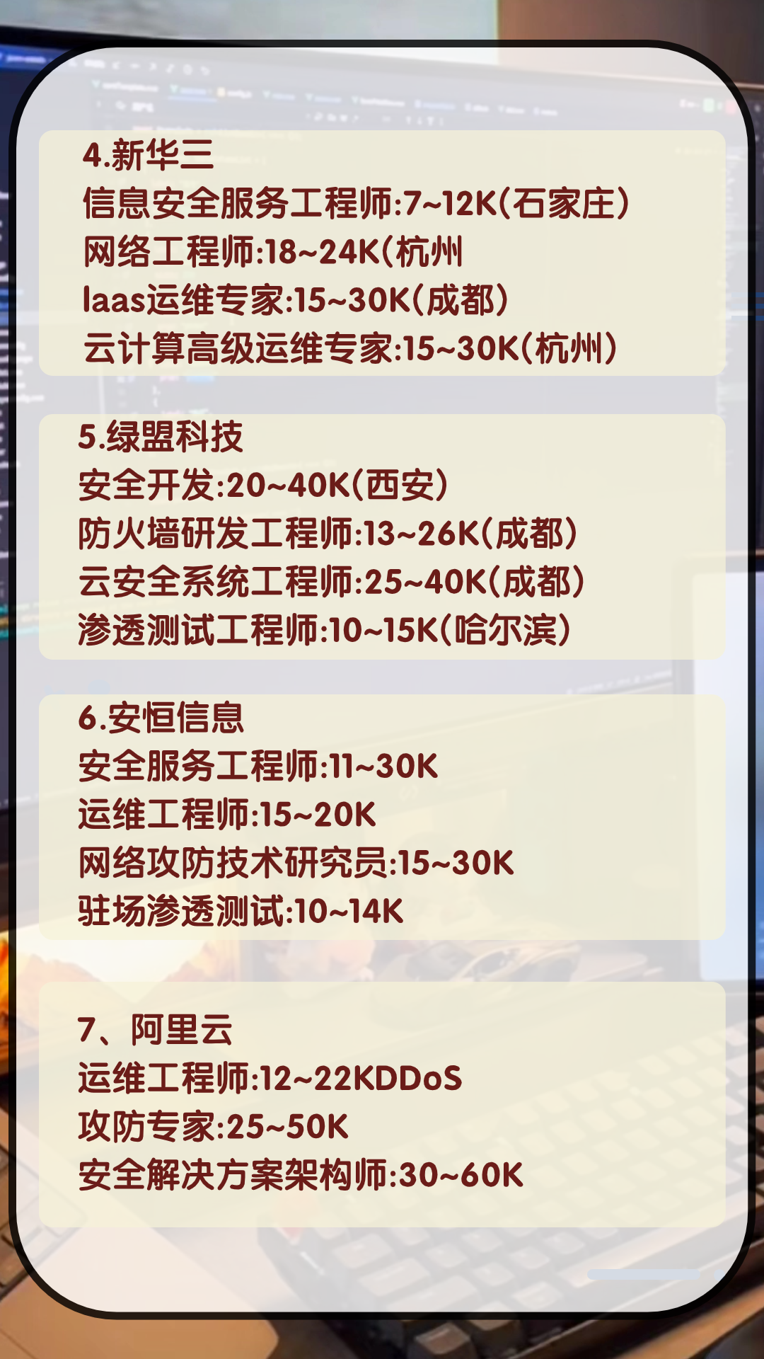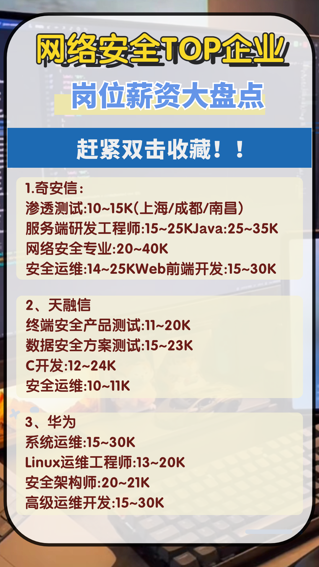 看看你是否也有机会成为这些企业的网安精英,