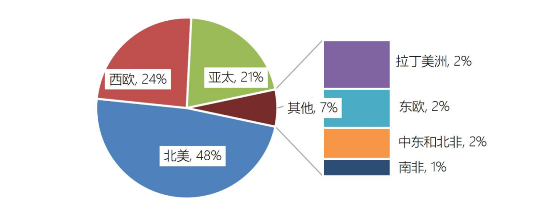 2021年全球网络安全市场区域分布情况,