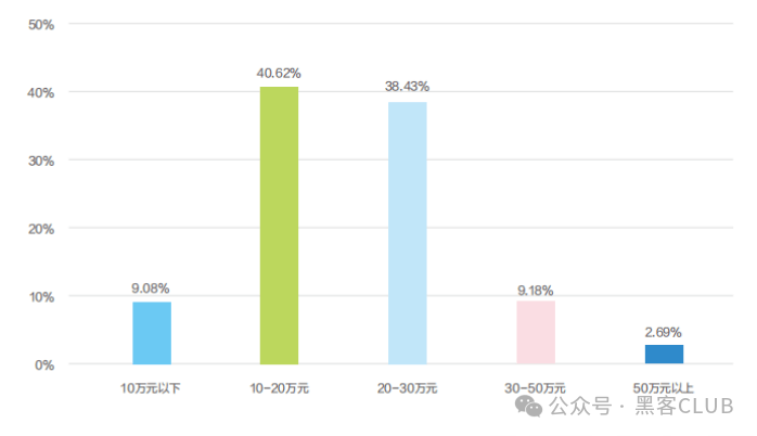 根据工信部发布的《网络安全产业人才发展报告》显示,网络安全人才平均年薪为21.28万元,整体薪资水平较高。数据显示,网络安全人才年薪主要集中在10-20万元,占比40.62%,与往年持平;其次是20-30万元,占比为38.43%,较2020年占比19.48%有显著提高;而年薪在10万以下人才占比由2020年的19.74%下降至2022年的9.08%。由此可见,网络安全行业作为新兴赛道,尚在快速发展阶段,从业人员薪资水平提升较快,也显示出网络安全行业相对更重视人才留存。