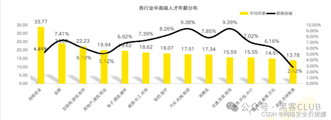 1、就业薪资非常高,涨薪快 2021年猎聘网发布网络安全行业就业薪资行业最高人均33.77万!