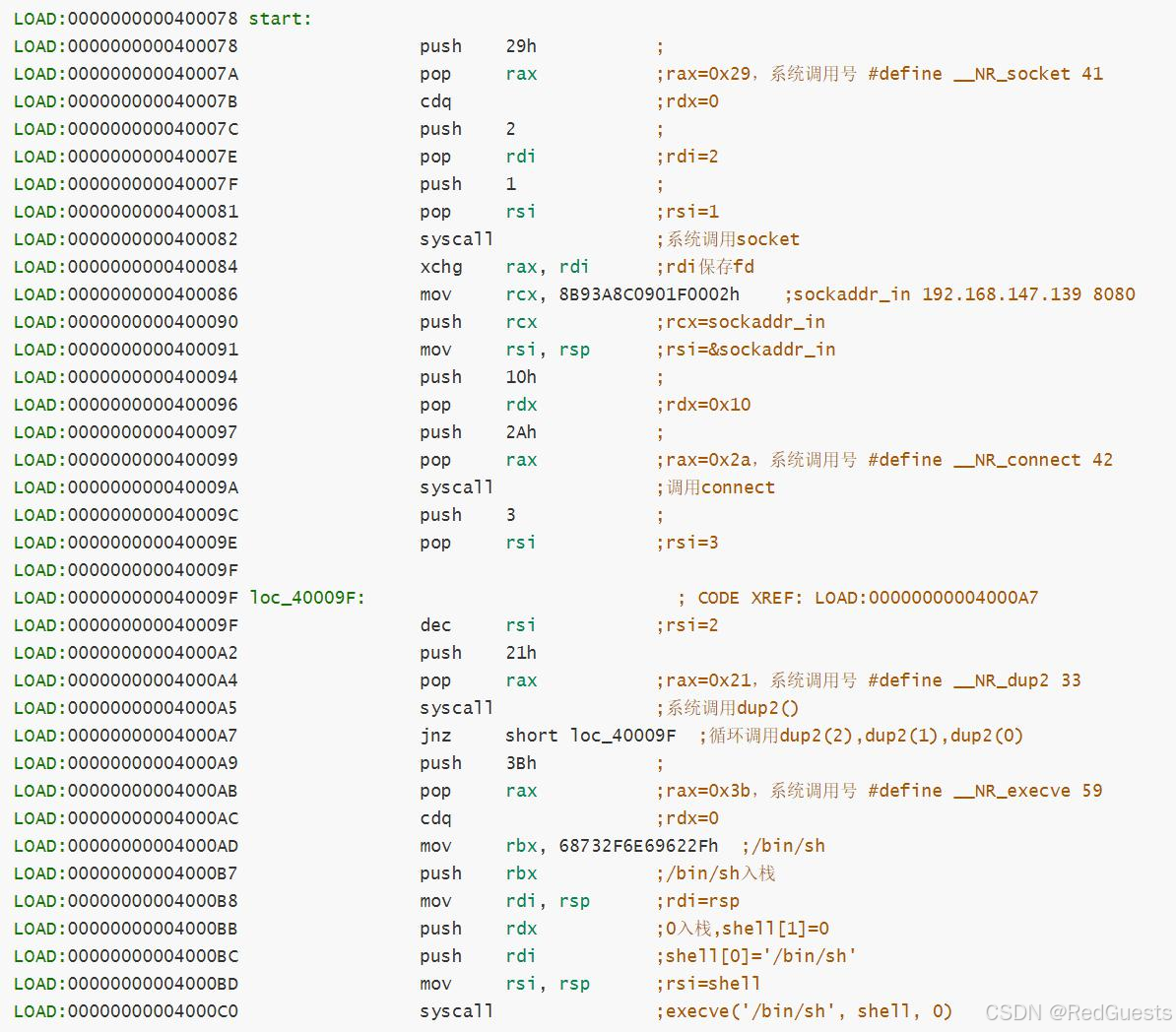 rdx:第三个参数 mov rax, 0 #rax保存系统调用号