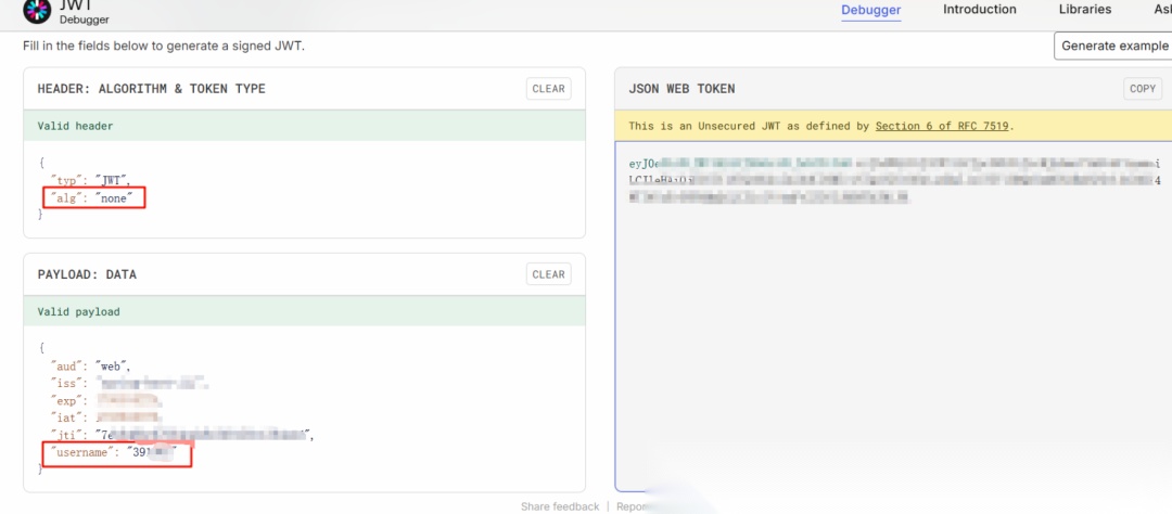 接下来就好办,直接改username参数,并且alg设为none