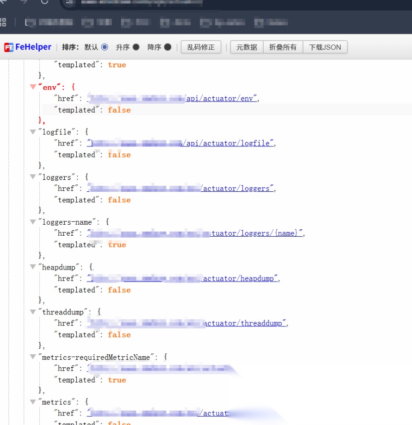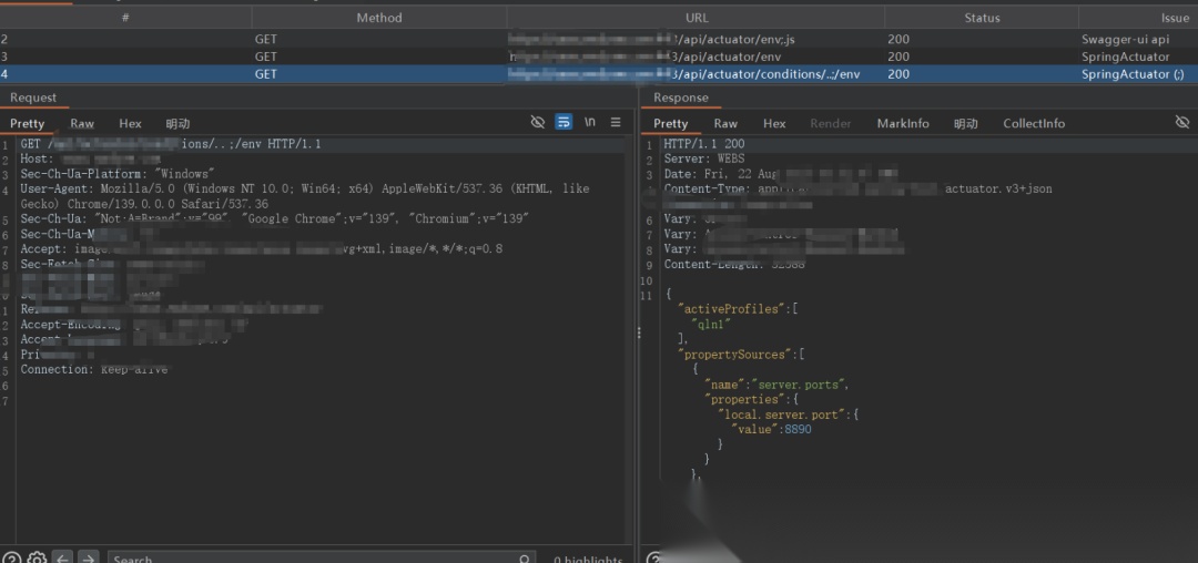 插件还捡了个Actuator端点泄露,其中泄露了ENV和Heapdump等高危端点。