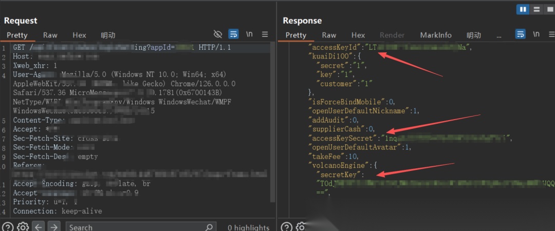 通过Hae插件在历史数据包中,发现疑似存在AKSK泄露。