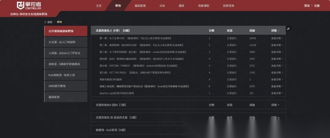 封神台由掌控安全打造,是一个线上网络安全演练靶场。它专注于渗透测试攻防实战,旨在帮助网络安全学习者和从业者提升实战技能。