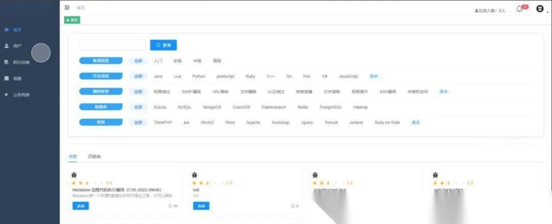 该项目与 hackmyvm 类似,是一个开源漏洞靶场。它基于 Docker 容器技术,内置多种预置漏洞环境,用户可一键部署并开展各类漏洞测试,非常适合具备一定基础的学习者进行漏洞复现与研究。