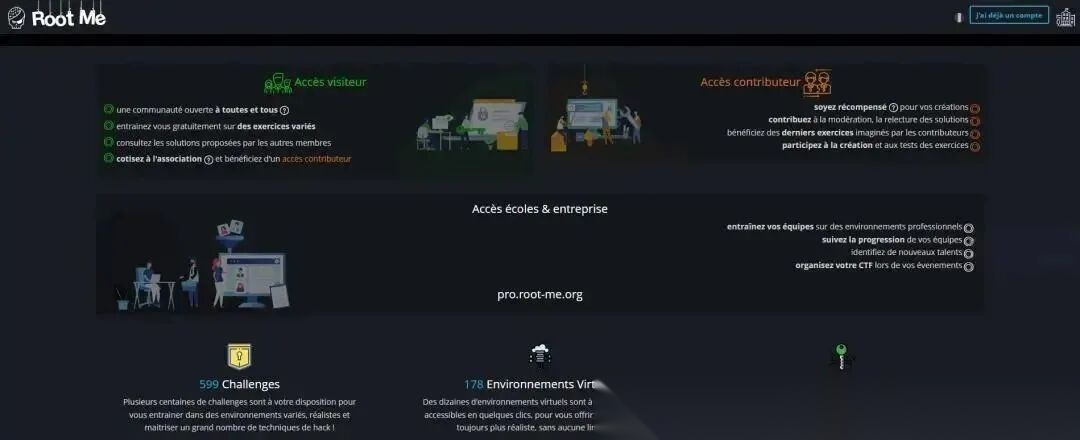 Root Me 是一个国际知名且免费的在线网络安全学习平台。它主打 CTF 风格的网络安全挑战,拥有涵盖密码学、WEB、脚本、网络、编程等主题的挑战靶场,特别适合中高级学习者精进技能。