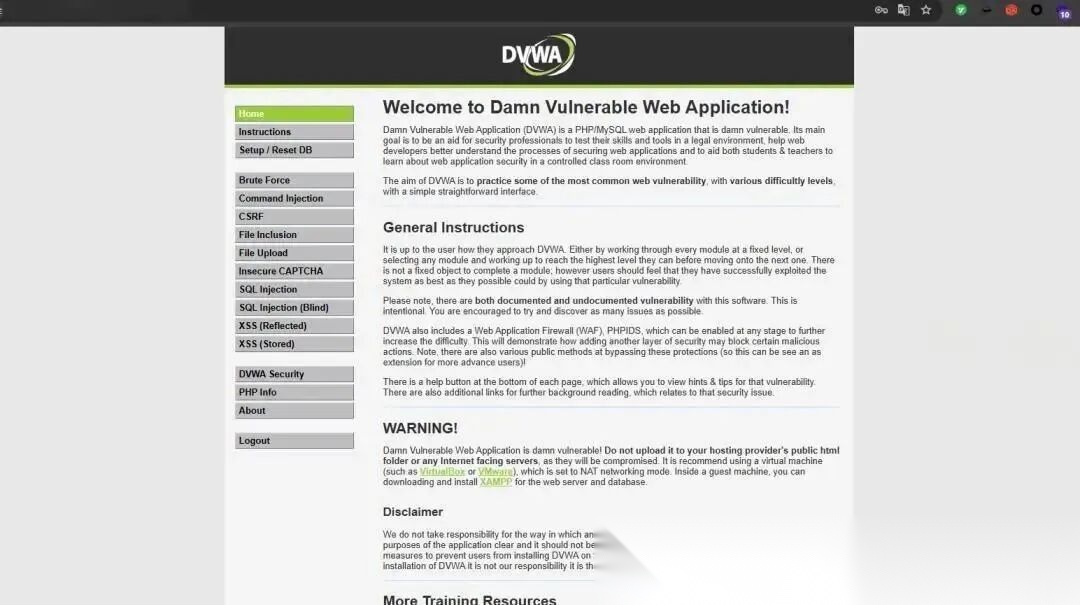 DVWA 作为开源项目,核心是展示 Web 应用安全漏洞。其目标是帮助安全人员、学生及开发者深入理解常见漏洞原理。平台通过模拟 SQL 注入、XSS 等典型攻击场景,提供实战化的安全测试环境。堪称新手入门安全领域的必练靶场。