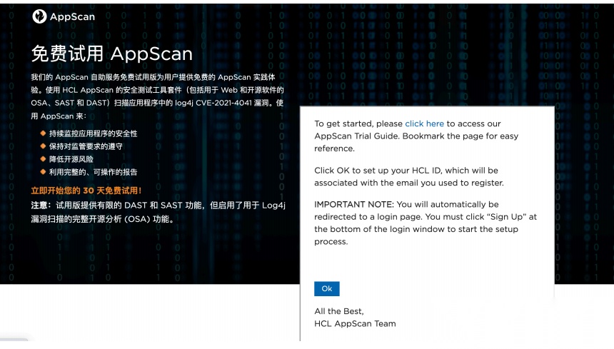 点击 OK, 跳转到试⽤界⾯