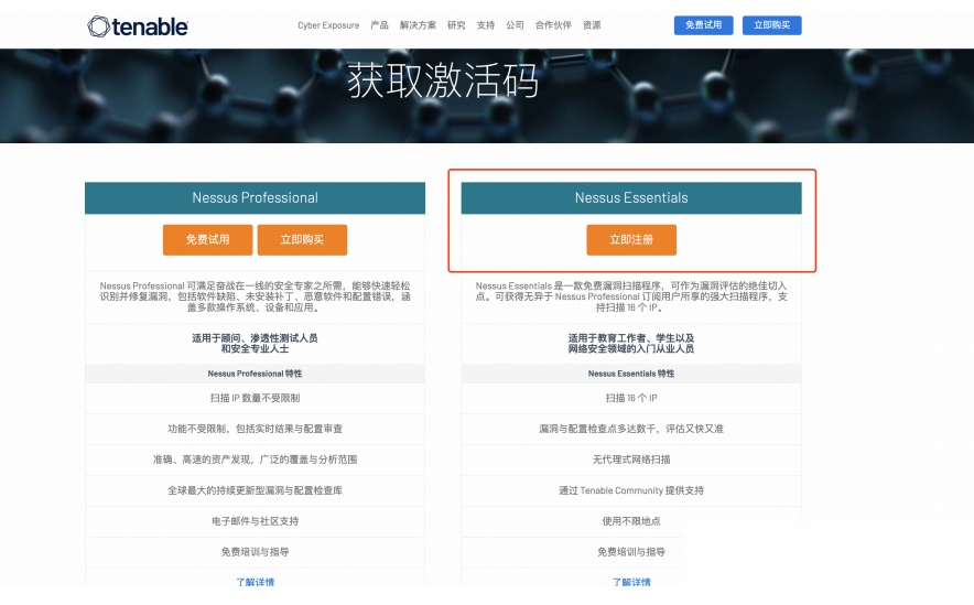 选择 Nessus Essentials