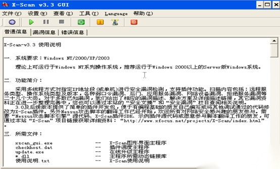 X-Scan是国内最著名的综合扫描器之一,它完全免费,是不需要安装的绿色软件、界面支持中文和英文两种语言、包括图形界面和命令行方式。