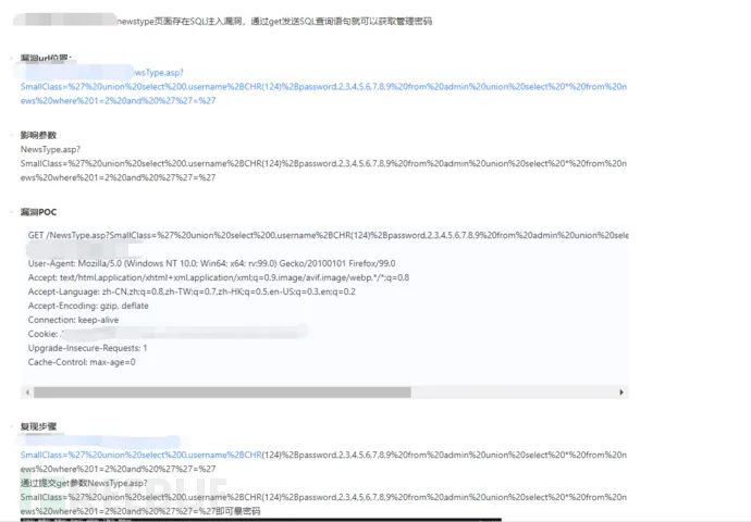 复现步骤:我通过XXX构造发现可能存在SQL注入,然后通过XXX参数可以获得XXX,数据库名为XXX