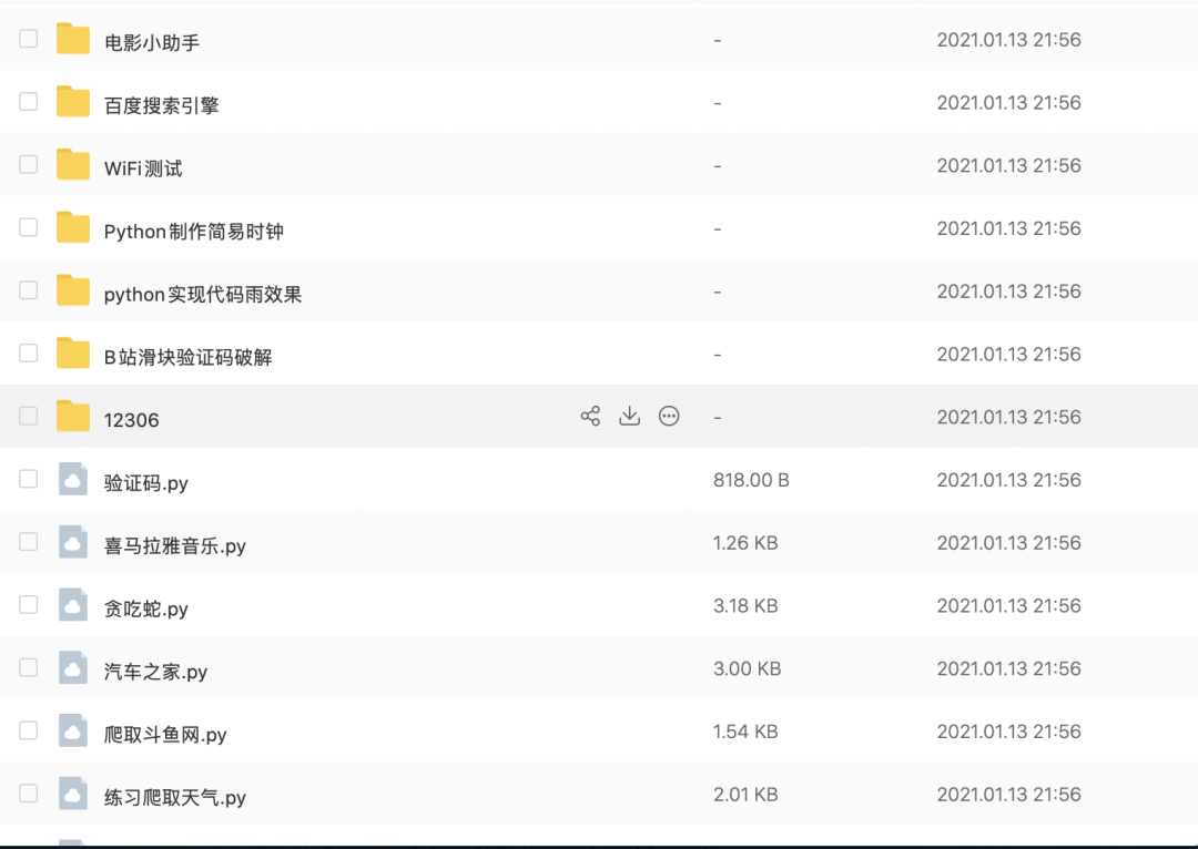 简单看下里面的爬虫脚本项目,有非常全面的学习案例,如 12306、网易云、微博、贴吧、天气、电影等等。