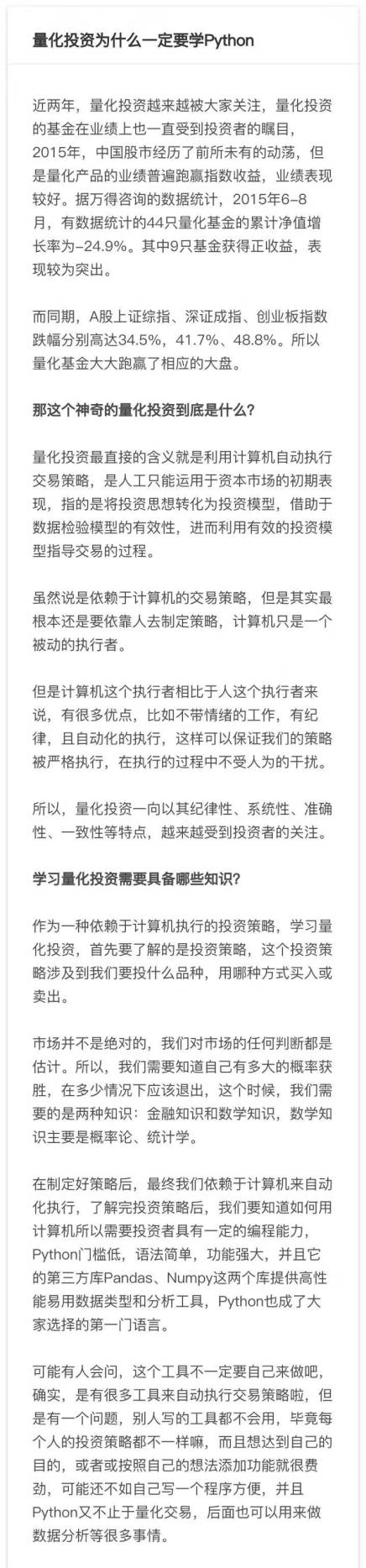 身处金融行业的你应该很清楚,量化交易平台全都由python完成