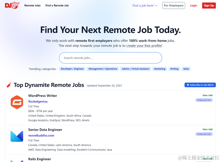 提供了26,930 个高质量远程工作岗位。
