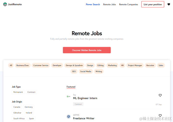 网站https://justremote.co/
