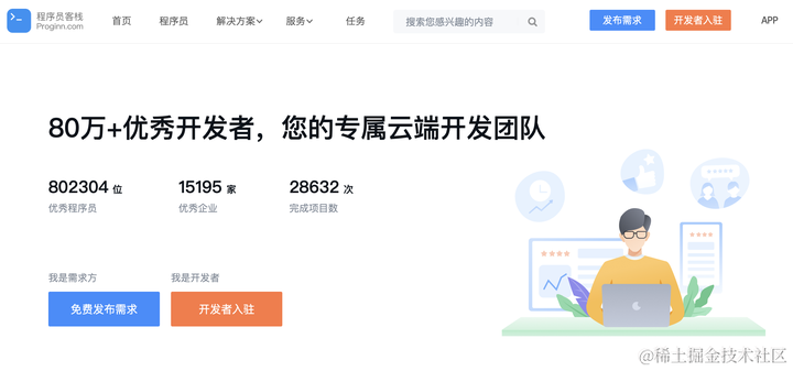 程序员客栈(https://www.proginn.com): 程序员首选的自由工作平台,很多优质的程序员都在这里远程工作,收入不低哦~超1.5w企业在此发单,近80万优秀开发者在此兼职,总有适合自己的兼职。