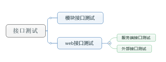 一般来说接口测试按测试对象分为两种类型:模块接口测试、web接口测试;web接口测试又可以分为服务端接口测试和外部接口测试。