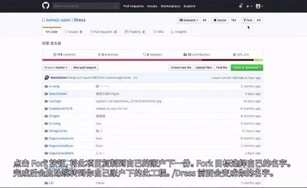 从这个项目介绍,大概可以看出这是一个通过教授用户上传一张女装照来学习如何在GitHub上克隆项目,创建分支,提交和同步修改,以及合并分支请求,方式非常简单粗暴