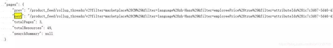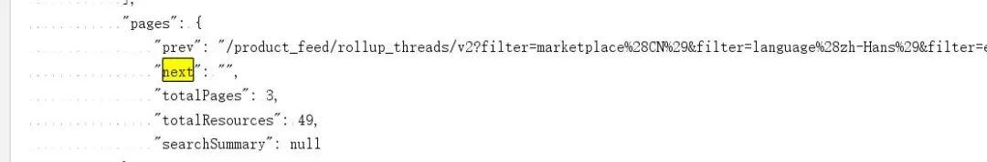 尝试检索下next中的内容,发现真的存在与endpoint参数后面,哦霍 现在我们猜想,会不会每个json中都包含pages next这个数据