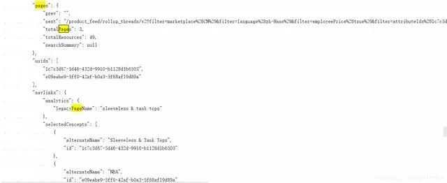 我们再回头看看第一次抓取下来的 url1 的json数据,首先尝试下检索page这个关键词(毕竟一般程序员都会写这个作为页面标识吧?),哦霍,发现了了不得的东西,