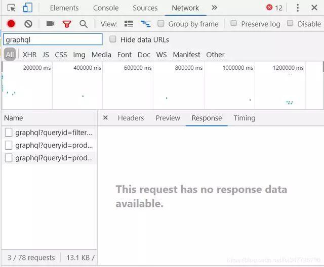 来了来了,它真的出现了,现在出现了3个文件都是graphql名字开头,毫无疑问第一个文件是我们上面找到的,那么第二个第三个呢?我们点开看看,会发现对应的商品名称之类的真的是瀑布流下端的数据。