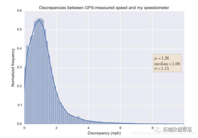 这是我的GPS测量的速度与速度计报告的数据之间的差异图。