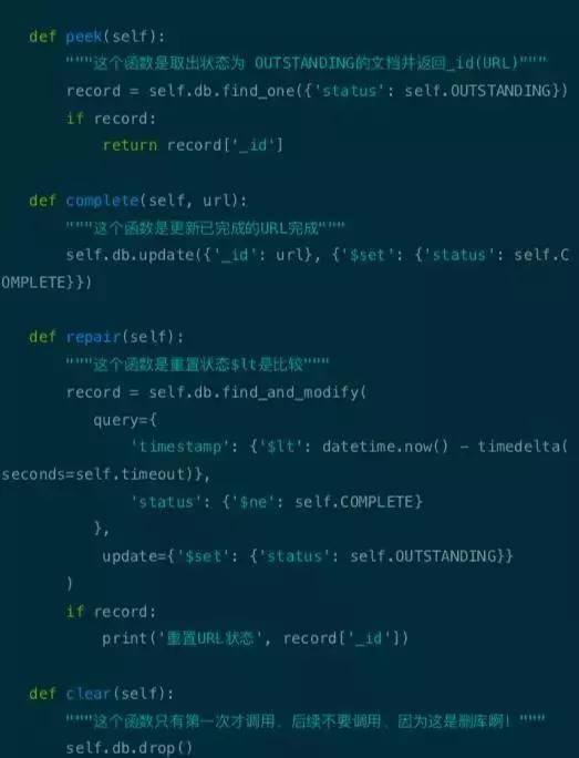嗯!当一个所有初始的URL状态都为outstanding;当开始爬取的时候状态改为:processing;爬取完成状态改为:complete;失败的URL重置状态为:outstanding。为了能够处理URL进程被终止的情况、我们设置一个计时参数,当超过这个值时;我们则将状态重置为outstanding。