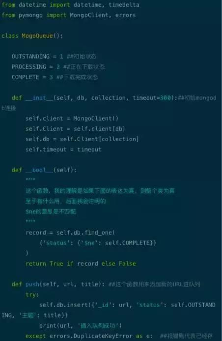 这就涉及到队列了,如果需要更为稳定健壮的队列,应该使用Celery这一类的专用消息传递工具,不过为了简便,这次我们使用MongoDB。