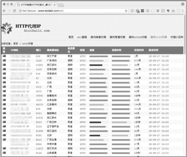 网上有一些免费代理列表网站会定期扫描互联网,从而获取一些代理服务器的信息,然后将这些信息公布出来。这些代理服务器的有效期可能比较短,也容易被滥用,质量通常较差,所以需要客户端自己筛选出可用的代理。