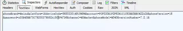 loginData = 'phoneBrand=Meizu&platform=1&deviceCode=868033014919494&account=FCF030E1F2F6341C1C93BE5BBC422A3D&phoneVersion=16&password=A55B48BB75C79200379D82A18C5F47D6&channel=MXMarket&phoneModel=M040&versionNumber=7.2.1&'