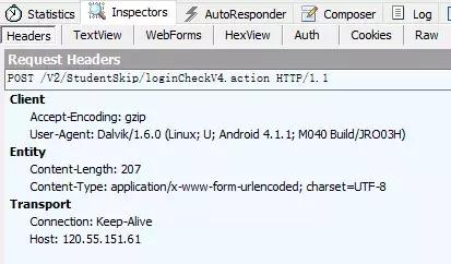loginUrl = 'http://120.55.151.61/V2/StudentSkip/loginCheckV4.action' headers = {