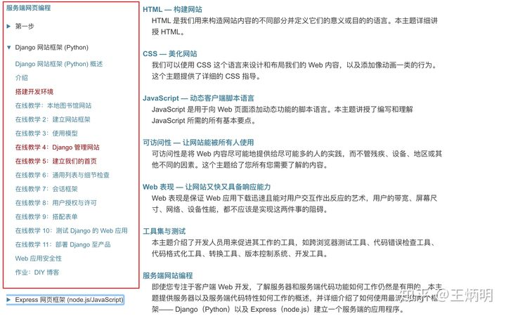 该网站可以让你从0开始学习Web,包括前端(HTML,CSS,JS)、后端(Django)