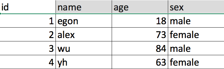 | id | name | age | sex |