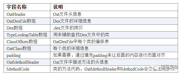 Header:Oat文件的头信息,详细描述了Oat文件中的内容。例如:Oat文件的版本,Dex文件个数,指令集等等信息。Header,Dex File数组以及Class Metadata数组都位于ELF的只读数据段(.rodata)中。
