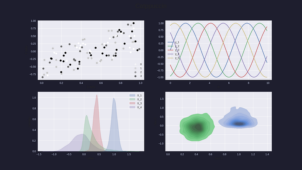 Catppuccin软件包还提供了一个有趣的功能,可以将不同的样式表进行混合。可以尝试将基本的seaborn-v0\_8-dark和mocha样式表结合起来。