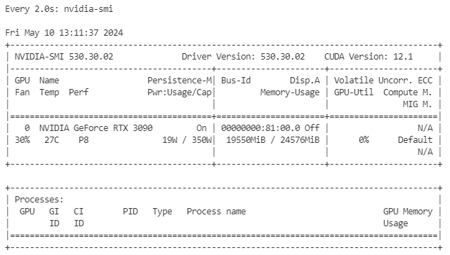 大模型服务主要依赖于GPU资源,这次的实验是在一个虚拟机上完成的,分配了一张RTX3090卡,有24G显存,大模型服务启动之后,显存使用在20GB左右。