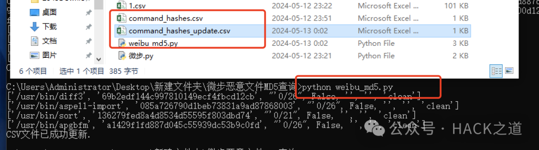 check_file文件夹–检查命令篡改 weibu_md5.py 通过脚本获取系统上的命令配置文件的MD5值到check_file/*.csv文件中,进行微步的威胁情报查询,需要配置脚本中的自己api。脚本执行后会在当前目录生成结果文件。是否命令篡改结果一目了然。