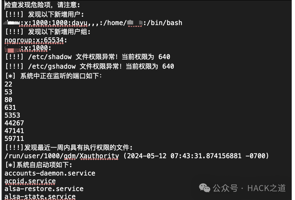脚本执行后生成的文件解释:danger_file.txt 脚本执行后的高危结果,对付看,结果需要经验分析,不要一股脑就认为风险项。