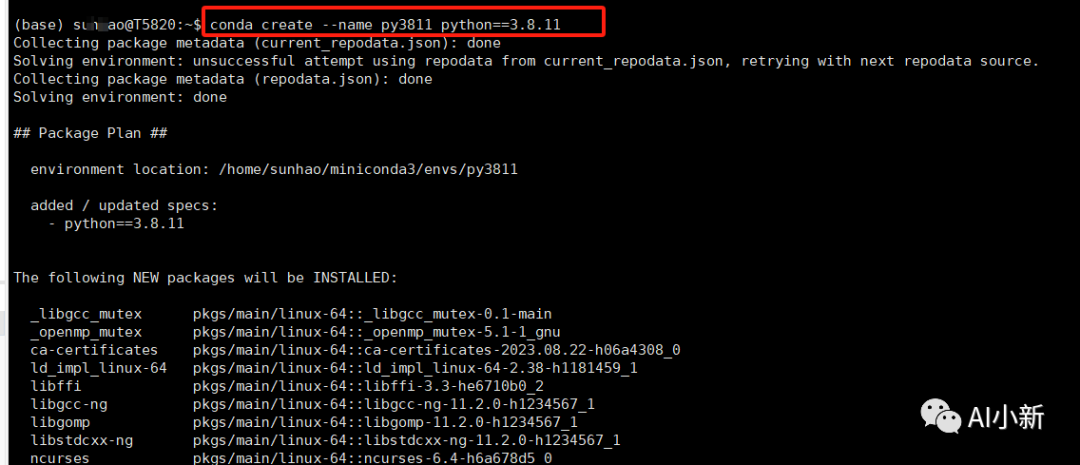 3.3 选择的 python版本大于3.8,使用如下命令进行创建conda环境。